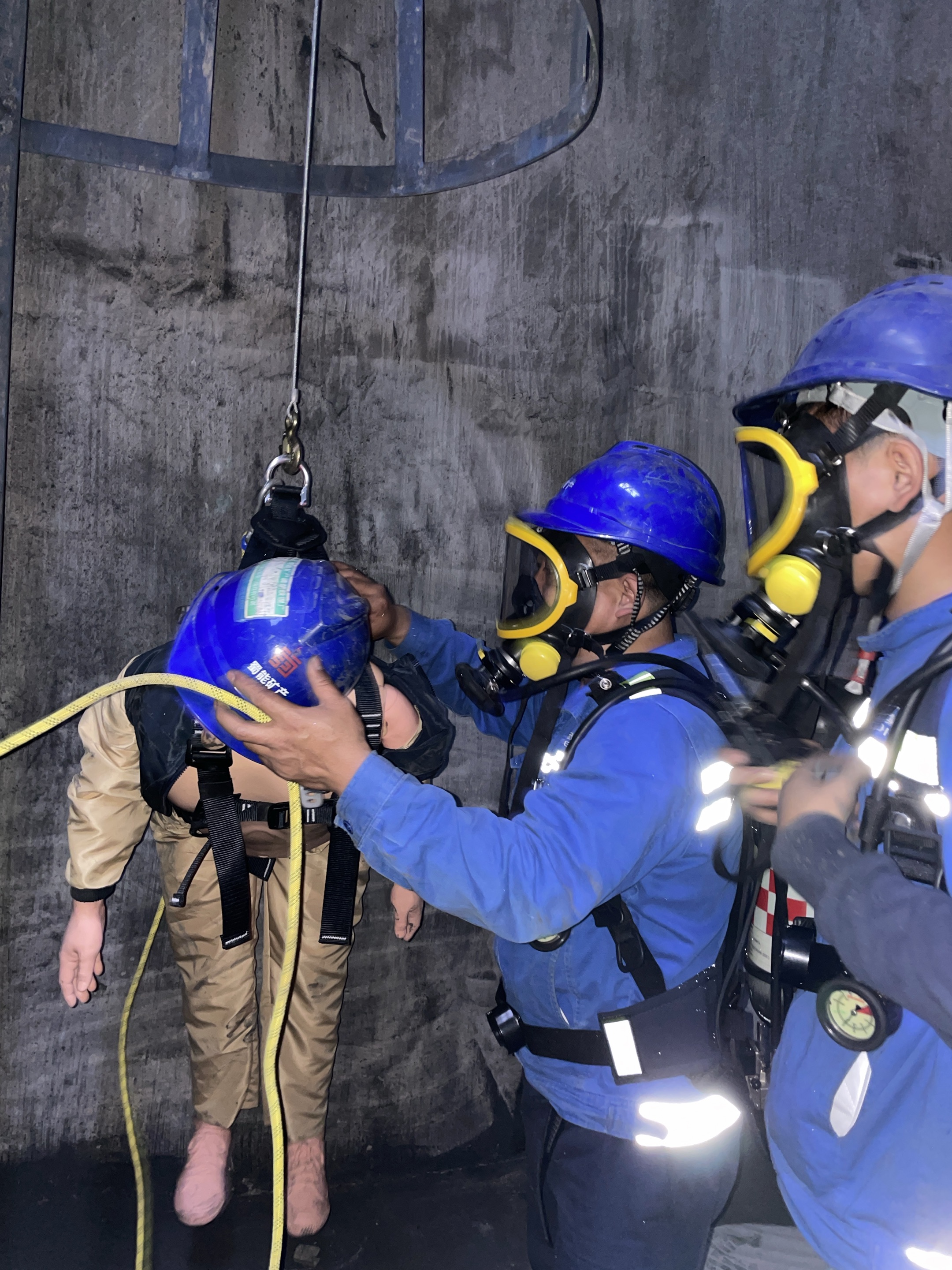 ? ? ? ?此次演練模擬機(jī)修人員在地坑檢修作業(yè)時(shí)因氮?dú)庑孤?、氧含量驟降導(dǎo)致窒息的突發(fā)場(chǎng)景。警報(bào)拉響后,應(yīng)急指揮中心立即啟動(dòng)分級(jí)響應(yīng),救援搶險(xiǎn)組攜正壓式呼吸器、氣體檢測(cè)儀等專業(yè)設(shè)備迅速抵達(dá)現(xiàn)場(chǎng),按照“先檢測(cè)、后評(píng)估、再施救”原則,精準(zhǔn)實(shí)施通風(fēng)換氣、傷員轉(zhuǎn)運(yùn)及心肺復(fù)蘇。各環(huán)節(jié)銜接緊密、處置規(guī)范,充分展現(xiàn)了企業(yè)應(yīng)對(duì)有限空間作業(yè)風(fēng)險(xiǎn)的系統(tǒng)化應(yīng)急管理能力。