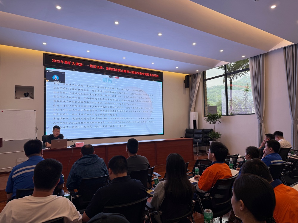 ? ? ? ?6月24日,公司組織開展“蜀礦大講堂——招標(biāo)采購法律、集團制度要點解讀與招標(biāo)采購全流程實務(wù)培訓(xùn)”。本次培訓(xùn)由公司生產(chǎn)經(jīng)營部工程與合同管理崗呂昊建授課。