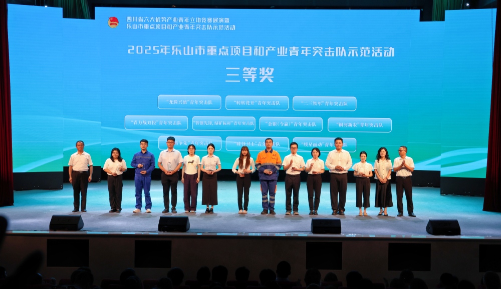 ? ? ? ?7月17日,四川省六大優(yōu)勢產(chǎn)業(yè)青年立功競賽展演暨樂山市重點項目和產(chǎn)業(yè)青年突擊隊示范活動在樂山市夾江縣舉行,蜀能礦產(chǎn)兩支青年突擊隊獲頒兩項市級競賽榮譽:“鐵鋰先鋒,創(chuàng)新引擎”青年突擊隊獲賽育人一等獎,“智創(chuàng)先鋒,綠礦標(biāo)桿”青年突擊隊獲賽效率三等獎。其中,“鐵鋰先鋒”團隊將代表樂山市出征省級青年立功競賽。
