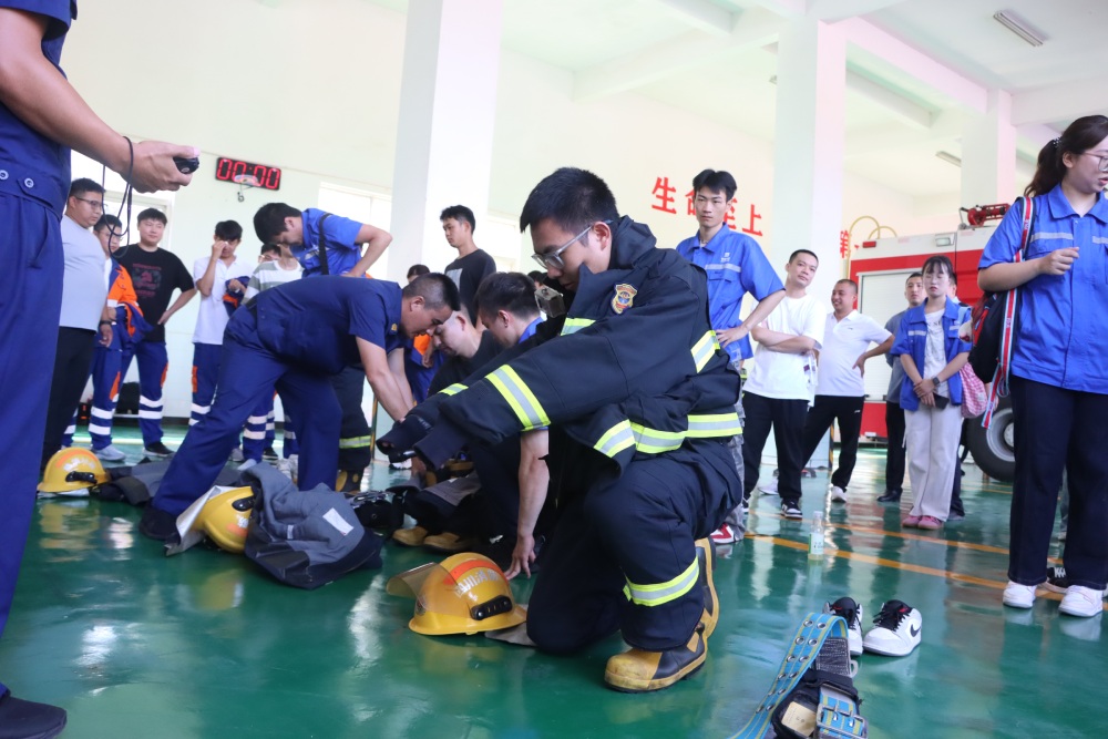 ? ? ? ?接著,為鞏固所學(xué),活動(dòng)特別設(shè)置了緊張激烈的團(tuán)隊(duì)消防技能競賽環(huán)節(jié)。員工們分成三支隊(duì)伍,在模擬火場環(huán)境中展開競技。競賽以“消防服穿戴”“滅火器精準(zhǔn)滅火”為核心項(xiàng)目,裁判組根據(jù)操作規(guī)范性、反應(yīng)速度和滅火效果進(jìn)行評分。大家在實(shí)戰(zhàn)中進(jìn)一步強(qiáng)化協(xié)作與應(yīng)急能力。
