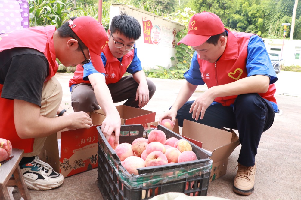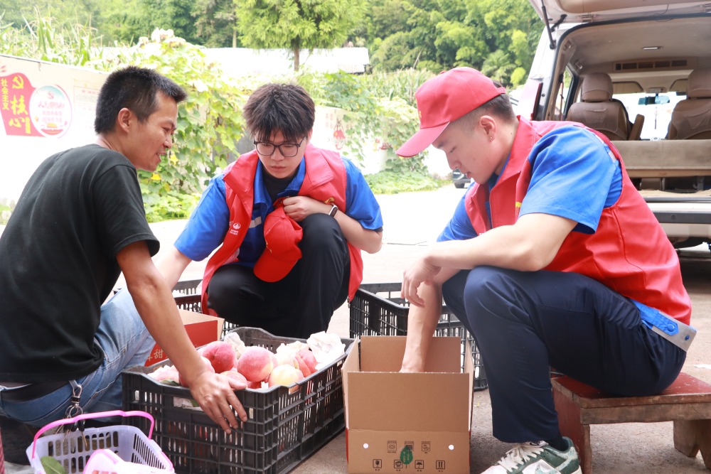 ? ? ? ?時(shí)值水蜜桃豐收季,志愿者們頭頂烈日,與當(dāng)?shù)剞r(nóng)戶(hù)并肩協(xié)作,全身心投入到采摘、分揀、裝箱等工作中。他們的到來(lái),不僅為果農(nóng)補(bǔ)充了勞動(dòng)力,有效緩解了果農(nóng)采收高峰期的壓力,更將 “盡企所能服務(wù)地方所需” 的實(shí)干精神帶到了田間地頭。這是繼今年 “五四” 青年節(jié)助農(nóng)采茶活動(dòng)后公司常態(tài)化組織青年力量深入田間地頭開(kāi)展志愿幫扶的又一實(shí)踐。