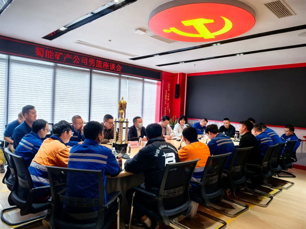 ? ? ? ?11月11日下午,蜀能礦產(chǎn)召開男籃座談會(huì),對(duì)近期參與集團(tuán)賽事成果進(jìn)行總結(jié)表彰。會(huì)議號(hào)召全體干部員工要學(xué)習(xí)男籃冠軍隊(duì)在此次比賽中展現(xiàn)出來的“團(tuán)結(jié)拼搏、勇爭(zhēng)一流”的昂揚(yáng)精神,凝心聚力為企業(yè)高質(zhì)量發(fā)展貢獻(xiàn)新的更大力量。公司黨支部書記、董事長(zhǎng)徐開貴主持會(huì)議并講話。