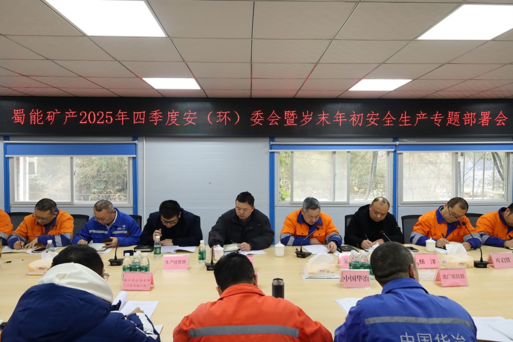 ? ? ? ?12月24日下午,蜀能礦產(chǎn)公司召開2025年四季度安(環(huán))委會暨歲末年初安全生產(chǎn)專題部署會,公司黨支部副書記、總經(jīng)理吳太茂主持會議并講話。