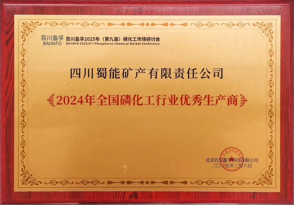 2025年3月7日,蜀能礦產(chǎn)獲評(píng)“2024年全國(guó)磷化工行業(yè)優(yōu)秀生產(chǎn)商”。