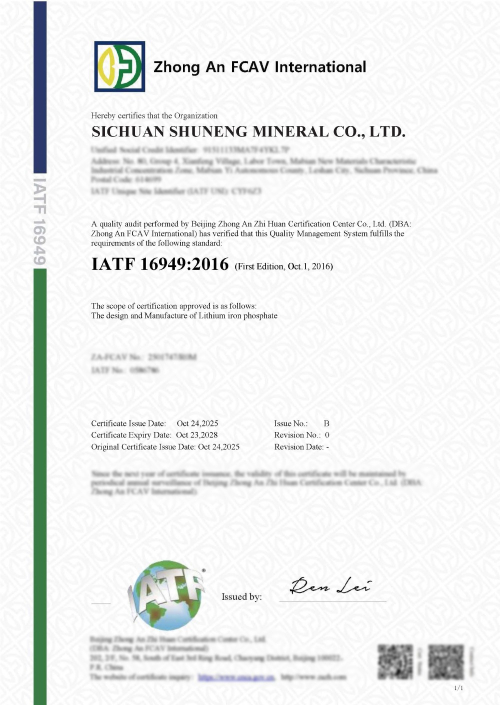 2025年10月24日,蜀能礦產(chǎn)公司順利通過(guò)IATF16949質(zhì)量管理體系認(rèn)證。