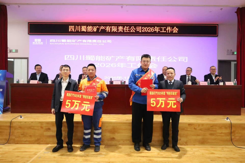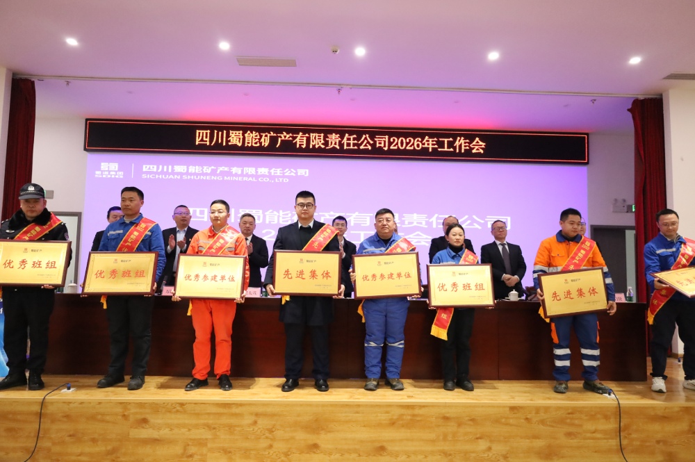 ? ? ? ?公司黨總支副書記、紀(jì)律檢查委員、工會主席(候選人)楊洋主持會議。黨總支委員、副總經(jīng)理韓方建,副總經(jīng)理楊安臣分別傳達(dá)了蜀道集團(tuán)、蜀道礦業(yè)集團(tuán)2026年工作會精神,黨總支委員、副總經(jīng)理萬洪勝宣讀2025年度評優(yōu)評先表彰決定。徐開貴分別與三號礦山礦長郭龍、磷酸鐵鋰廠總經(jīng)理蓋仲寬簽訂2026年度目標(biāo)責(zé)任書和安全環(huán)保目標(biāo)責(zé)任書。出席會議的領(lǐng)導(dǎo)共同為獲獎集體和個人代表頒獎。