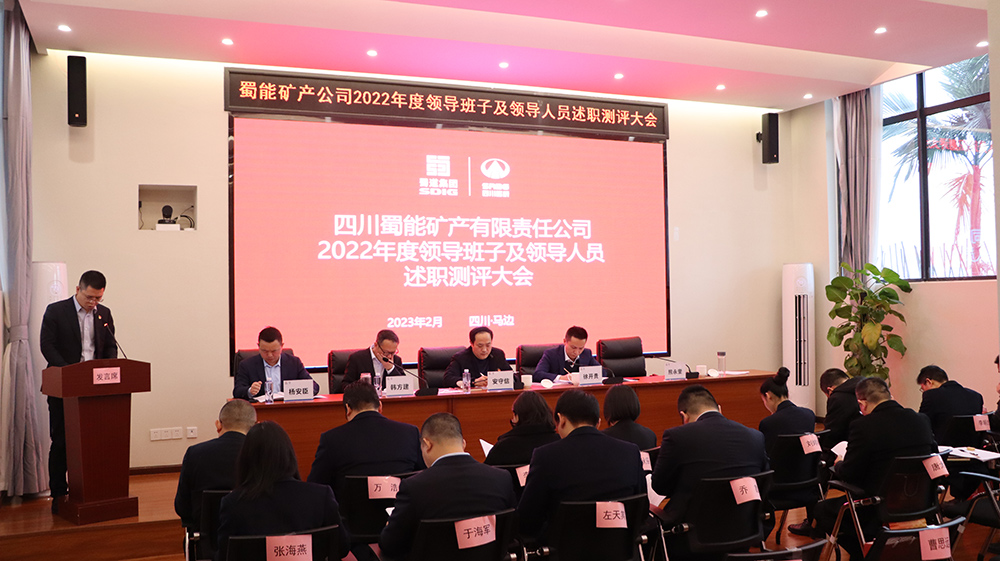 2月9日,蜀能礦產(chǎn)公司召開2022年度領(lǐng)導(dǎo)班子及領(lǐng)導(dǎo)人員述職測評(píng)大會(huì),新材料集團(tuán)黨委委員、監(jiān)事會(huì)主席安守信出席會(huì)議并講話,蜀能礦產(chǎn)公司黨支部書記、董事長、總經(jīng)理徐開貴主持會(huì)議。