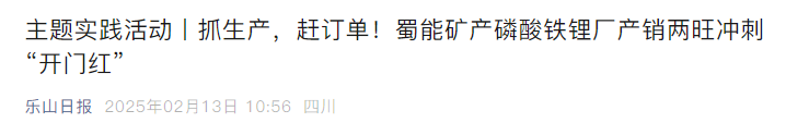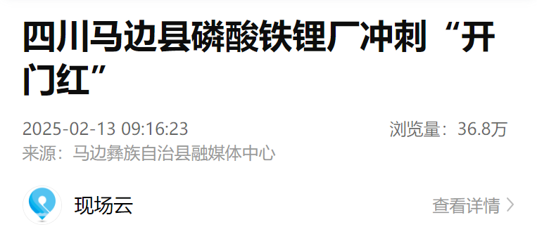 據(jù)了解,按照計劃,蜀能礦產(chǎn)磷酸鐵鋰廠2025年將計劃生產(chǎn)4萬噸產(chǎn)品。