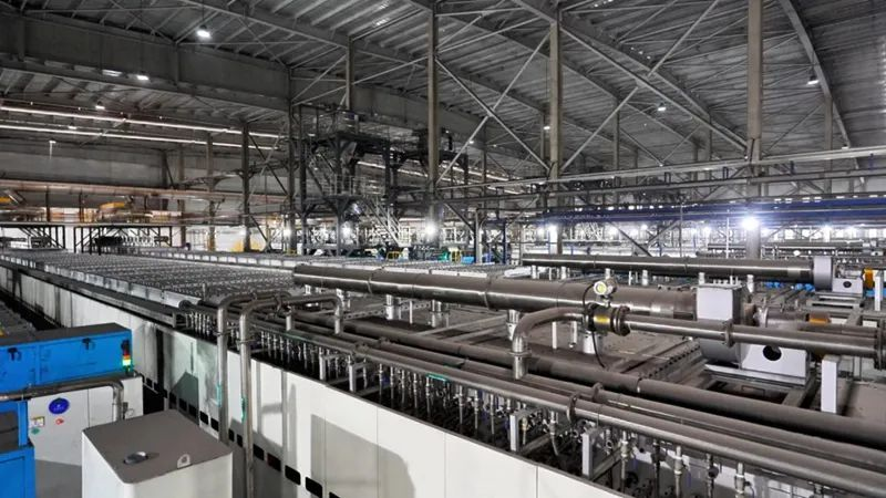 在窯爐燒結(jié)區(qū),五條智能化生產(chǎn)線同時運轉(zhuǎn),場面壯觀。材料進(jìn)入爐窯線經(jīng)過21-22小時的煅燒后,最后進(jìn)行氣碎包裝,磷酸鐵鋰正極材料便制作完成。