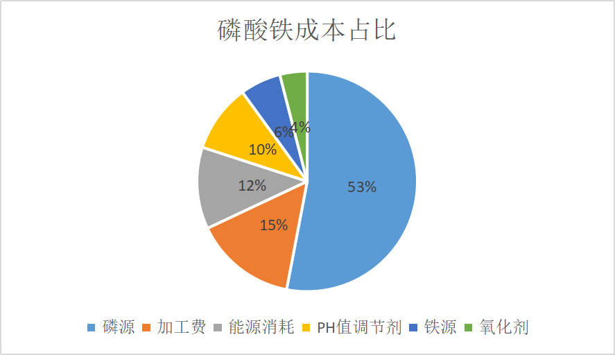 ? ? ? ? ?為了解決鐵源的問題,現在部分磷化工企業(yè)也在布局以鐵粉或者氧化鐵為鐵源的磷酸鐵工藝,雖然鐵源成本較硫酸亞鐵更高,但可以解決亞鐵需要凈化的問題,由于磷酸鐵成本構成中,磷源占比遠高于鐵源,而鈦白粉企業(yè)基本都不掌握磷礦資源,因此從成本角度考慮我們認為一體化的磷化工企業(yè)在成本上較鈦白粉企業(yè)將始終占據一定優(yōu)勢。