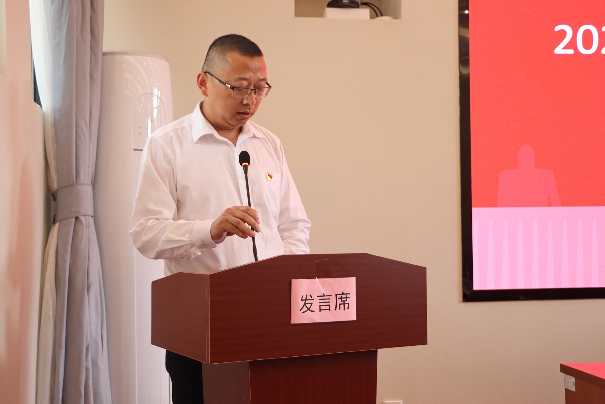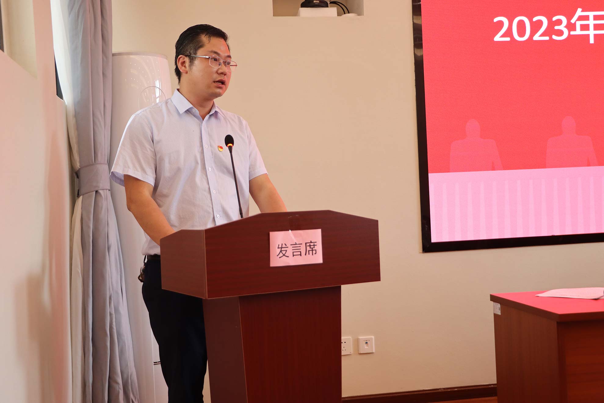 (后勤保障黨員先鋒隊隊長萬浩作表態(tài)發(fā)言)