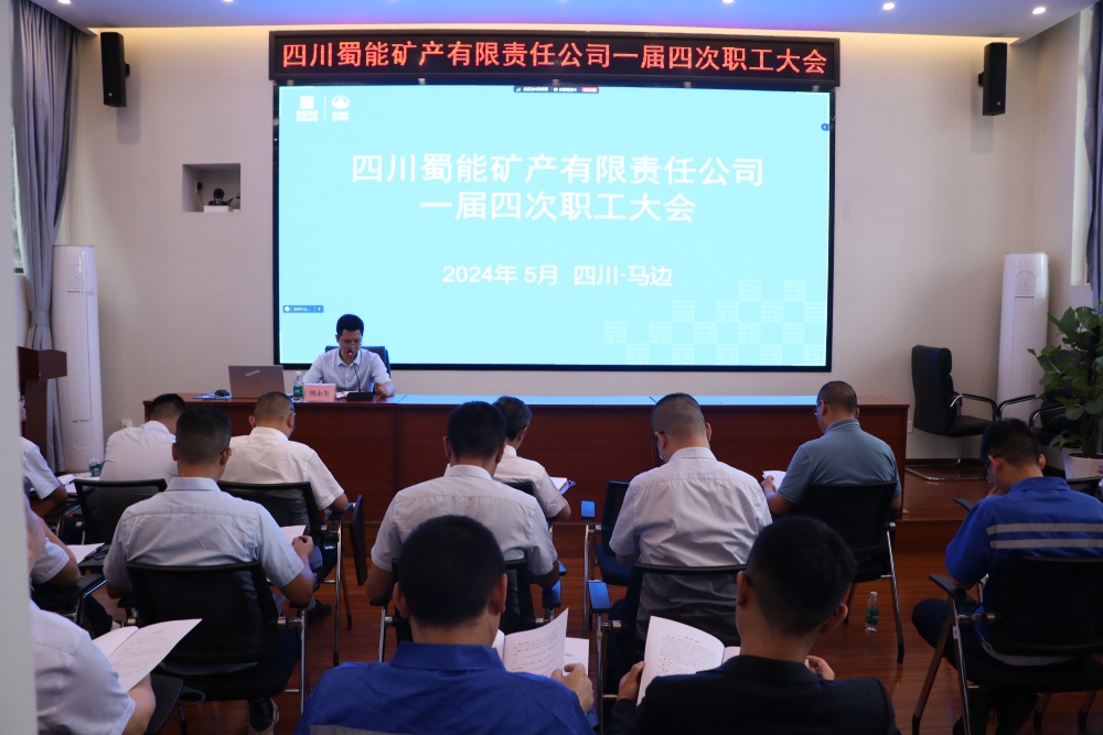 ? ? ? ?5月28日,蜀能礦產(chǎn)召開2024年一屆四次職工大會,黨支部群工委員、財務總監(jiān)、工會主席熊永奎主持會議。